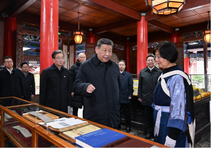 古城内的木氏土司府衙署见证了西南地区各民族交往交流交融的历史。习近平察看木府主要建筑,参观纳西族东巴文化研究成果展示。他强调,要保护利用好木府这样的重要文化地标,保护传承好中华优秀传统文化,引导各族群众自觉铸牢中华民族共同体意识,不断推进中华民族共同体建设。