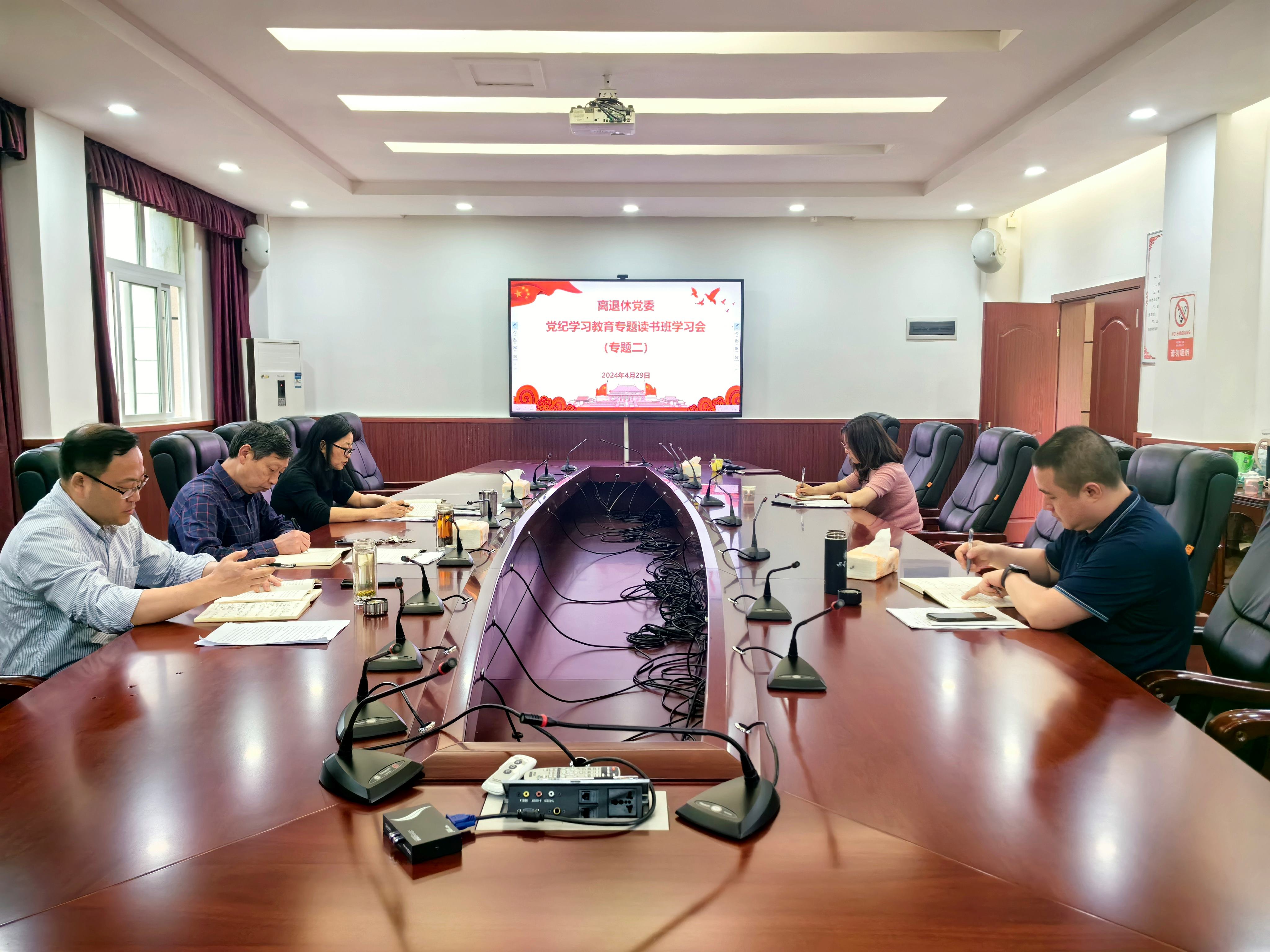 4月28、29日,离退休党委在北区教职工活动中心307会议室分别举行了第一期和第二期党纪学习教育专题读书班学习会,全体处级党员领导干部参加学习,会议由离退休党委书记李红主持。