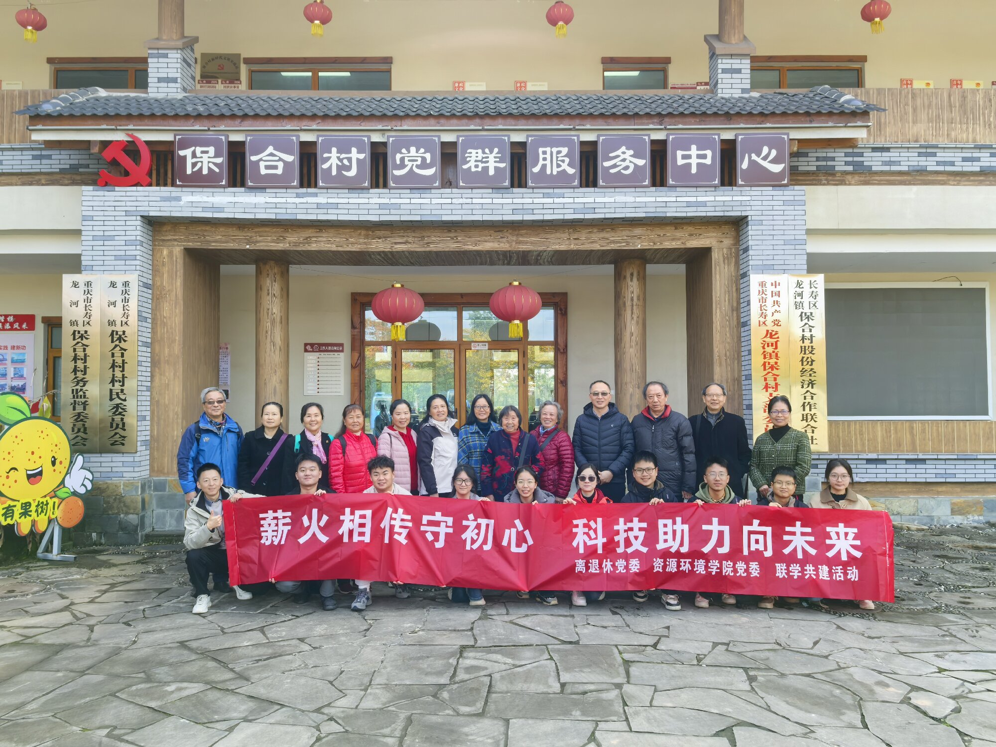 11月27日,离退休党委“缙云银晖”党建示范团队和资源环境学院学生支部共赴长寿区保合村“乡村振兴示范基地”开展联学共建活动,本次活动围绕“薪火相传守初心,科技助力向未来”的主题开展了实地研学和座谈交流,老党员、老专家们与青年大学生共话初心,携手同行,推动科技助农活动走深走实。