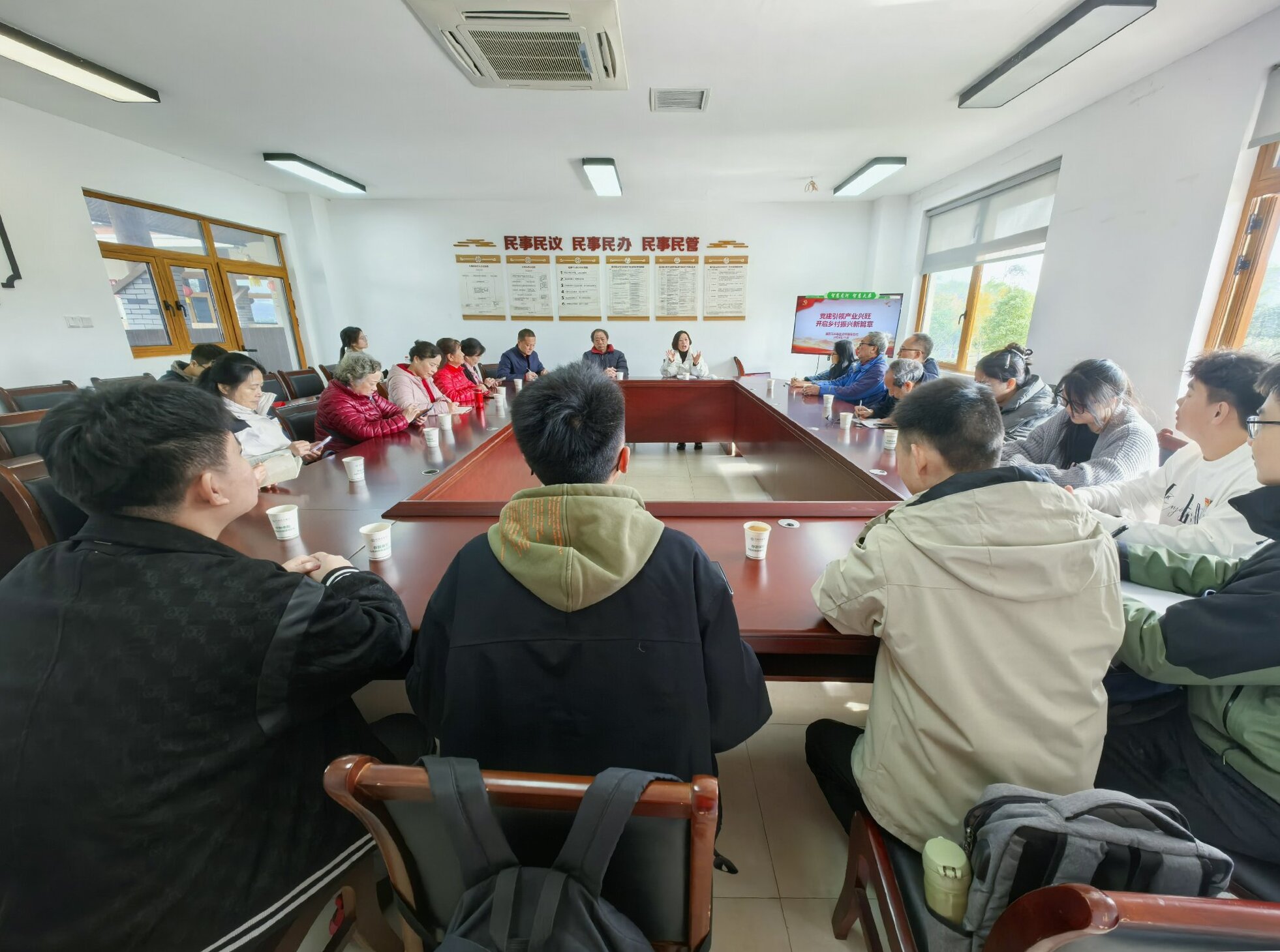 座谈交流会上,吴萍向师生们介绍了保合村在村落规划、柑橘产业、旅游发展等方面做出的努力及取得的成效,并分享了她多年扎根乡村建设的成长经历和工作感悟,对学生们提出的问题进行了详细解答。与会师生围绕主题展开了热烈讨论。资源环境学院王正银老师围绕保合村支柱产业发展及其长效机制建设等提出了建议。经济管理学院张集琼老师鼓励同学们,农学专业“广阔天地,大有作为”,建议学生们把课堂学习和乡村实践紧密结合起来,为国家乡村振兴建设贡献青春力量。历史文化学院李世平老师希望同学们珍惜实践交流机会,多看多听多学习,在实践中增长知识、提高本领。21级水土保持与荒漠化防治专业陈俊霖同学分享了走出教室来到乡村的感悟,认为农学生应该将课堂理论与乡村实践紧密结合,将双脚扎进泥土,脚踏实地地将论文写在祖国大地上。21级农业资源与环境专业赵晓东同学结合自身“三下乡”经历分享了对保合村支柱产业发展的认识和建议,并现场请教了大学生参与农业农村工作的相关问题,吴萍给予了认真细致的回答,并热情邀请青年学子到保合村发展自己的事业。最后,离退休党委书记李红进行了总结发言,对参会的全体人员表示感谢,介绍了“缙云银晖”党建示范团队的工作情况和近期工作计划,希望老党员、大学生党员们积极发挥专业优势,为助力乡村振兴和建设社会主义现代化强国做出应有的贡献。