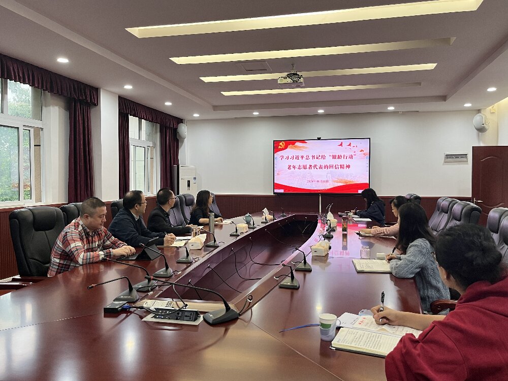10月11日上午,离退休工作处召开专题会议,传达学习习近平总书记给“银龄行动”老年志愿者代表重要回信精神。离退休工作处处长鲁森主持会议,全体处科长参加会议。