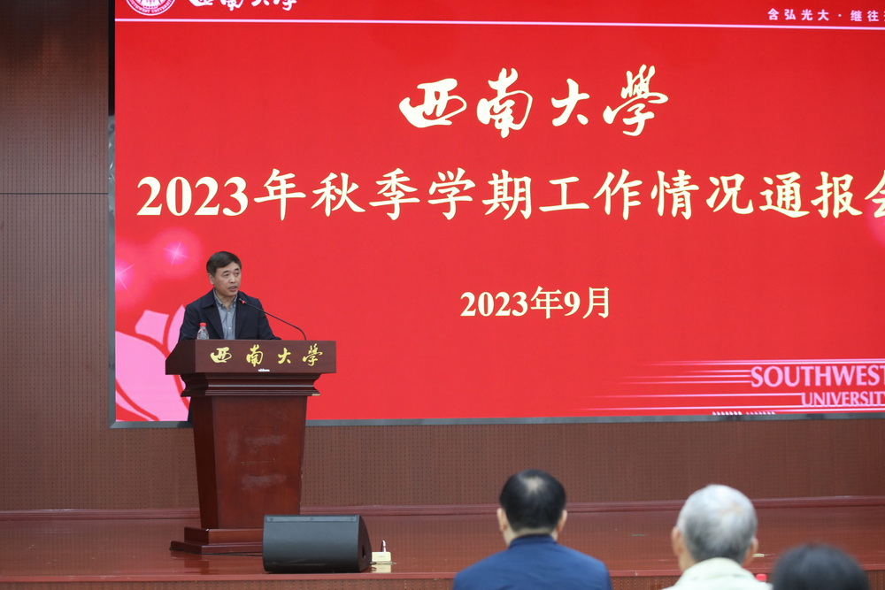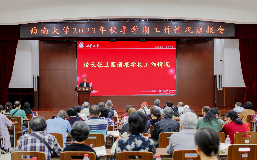 9月25日上午,学校召开2023年秋季学期工作情况通报会,校长张卫国向老同志通报学校工作情况,学校党委副书记潘洵主持会议。学校退休校级老领导代表,离退休党委委员、纪委委员、支部书记、支部委员,退休行政小组组长,退休处级干部活动服务组组长,校关工委老同志代表,教代会老同志列席代表,老年群团组织负责人等参加会议。