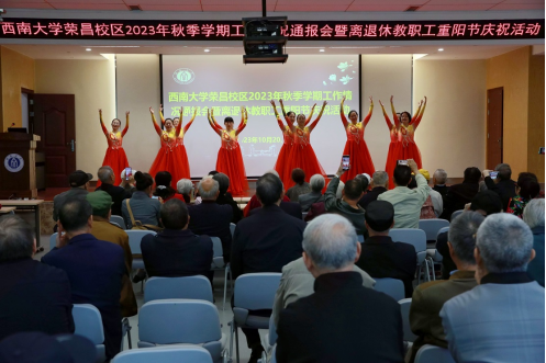 10月20日上午,西南大学荣昌校区2023年秋季学期工作情况通报会暨离退休教职工庆祝重阳节活动在7B101报告厅举行,副处级组织员包尔泉同志出席会议并向参会的离退休老同志通报学校、校区近期有关工作推进情况,离退休党委及办公室全体职工以及100余名离退休老同志参加了会议。会议由荣昌校区离退休党委书记、离退休工作办公室主任唐胜云主持。