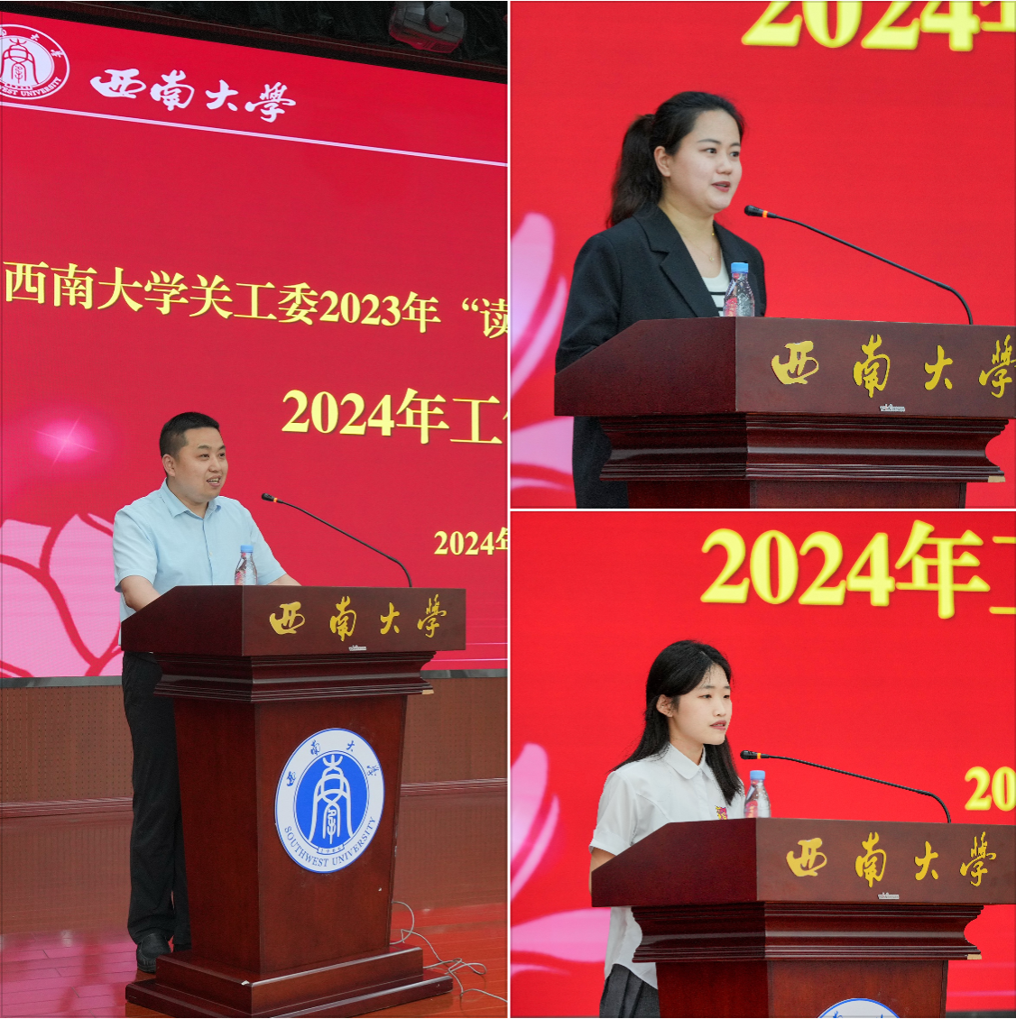 潘洵在讲话中,对学校关工委在2023年“读懂中国”活动中取得的成绩给予高度肯定,对获奖个人和单位表示热烈祝贺,向积极投身于关工委工作的老同志和关工委战线全体同志致以崇高的敬意和衷心的感谢。从“提高政治站位,深刻把握开展‘读懂中国’活动的重要意义”“坚持立德树人,将‘读懂中国’活动融入学校思想政治工作体系”“弘扬‘五老’精神,推动关工委工作高质量发展”三个方面对进一步做好关工委工作和开展好2024年“读懂中国”活动提出了希望和要求。他指出,今年是中华人民共和国成立75周年,学校各级关工委要紧扣“教育强国,奋斗有我”主题,加强组织领导,加大宣传力度,全力打造更多反映“五老”在助力教育强国、科技强国、人才强国建设中感人事迹的优秀作品。他强调,学校关工委要坚守立德树人初心,将“读懂中国”活动融入“时代新人铸魂工程”,纳入党团组织和学生工作部署,深度融入学校思想政治工作体系。他希望,关工委工作要以习近平总书记对关心下一代工作的重要指示精神为指引,切实增强责任感和使命感,不断提升关工委工作的时代感和实效性,推动关工委工作高质量发展。