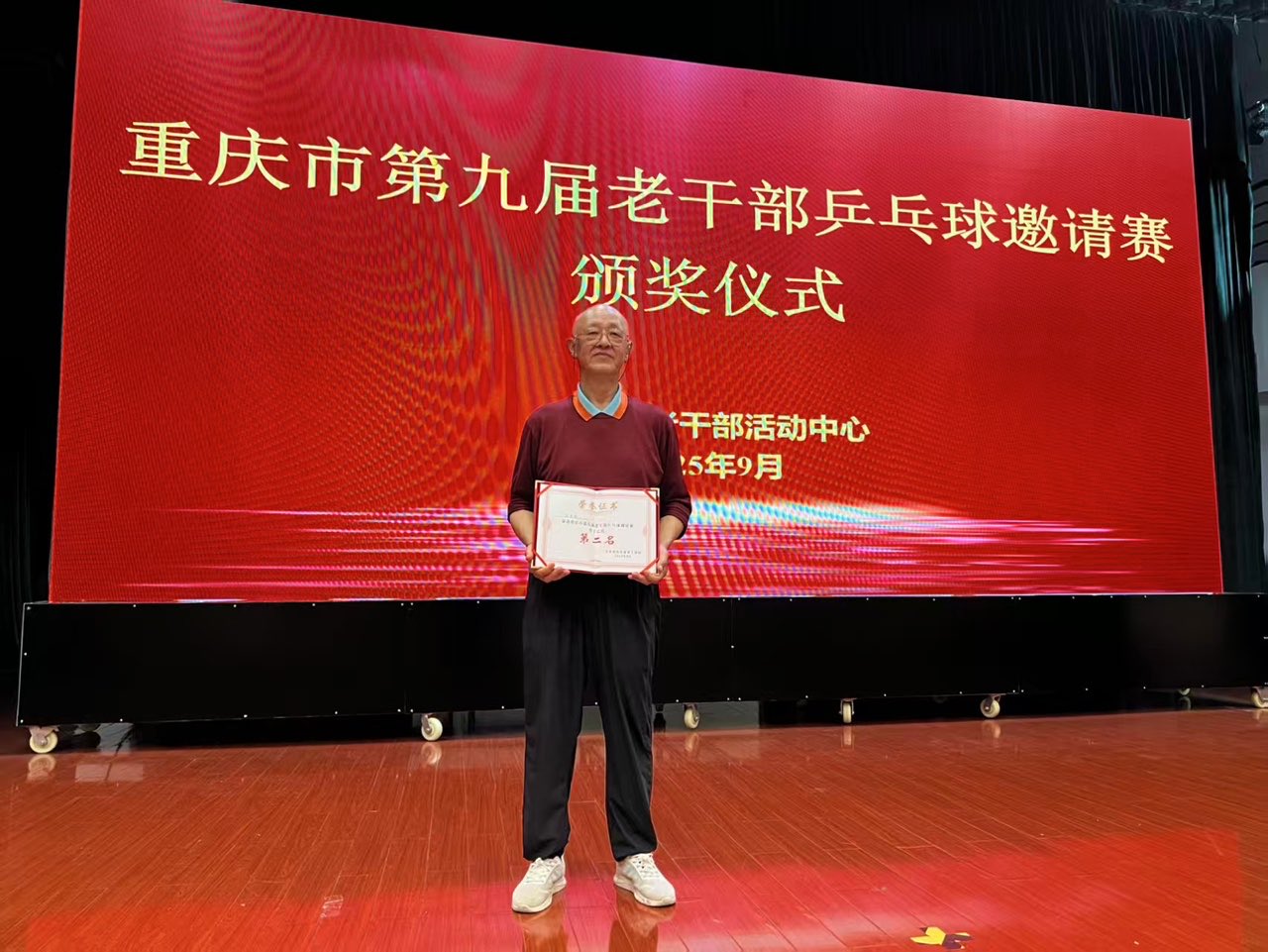 在近日落幕的重庆市第九届老干部乒乓球邀请赛上,我校喜获两项荣誉。退休教师郑建鸥凭借出色技艺与顽强拼搏,勇夺男子乙组第二名;我校离退休工作处被授予“优秀组织奖”。
