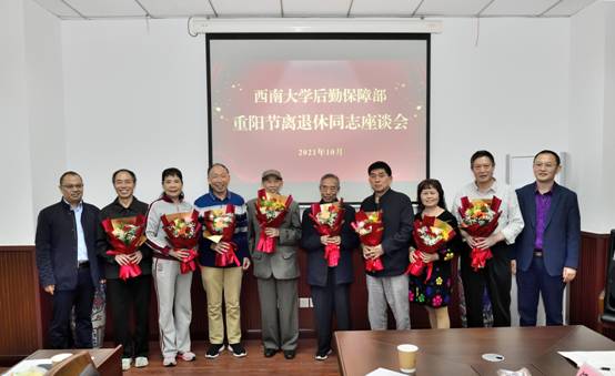 10月13日下午,后勤保障部在第三会议室召开重阳节离退休职工代表座谈会,通报学校及后勤工作,为满五、满十的老同志集体庆祝生日,开展在职职工与离退休职工“结对子”活动。后勤保障部领导班子全体成员、20余位离退休职工参加座谈会。会议由李兴元副部长主持。